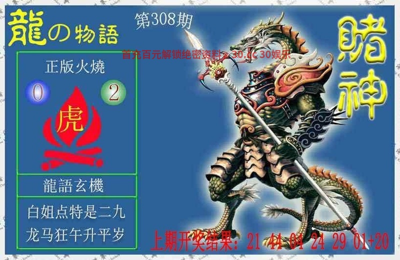| 302期:解澳彩签牌 精准波色+大小:红绿波+大 |